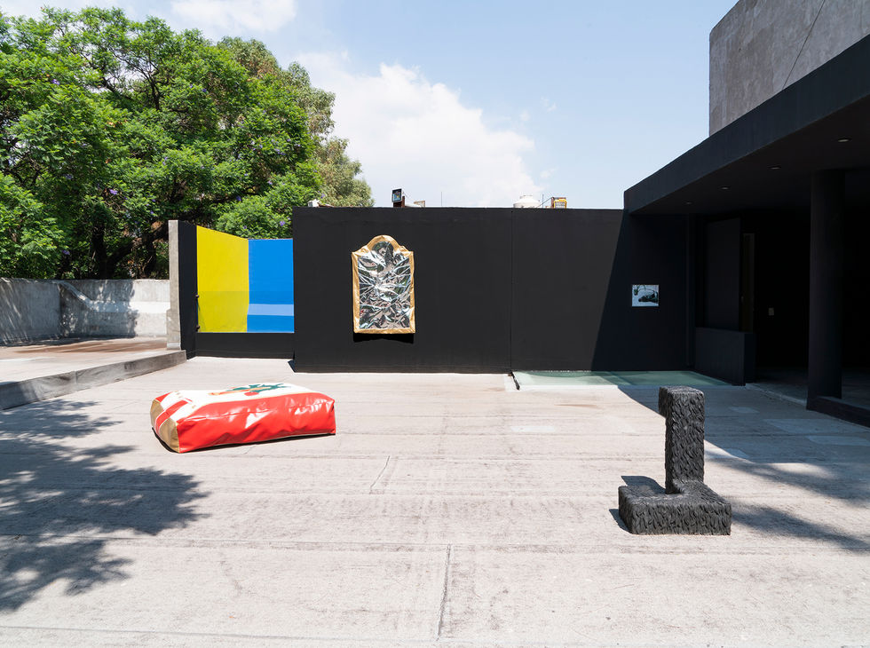 Al Freeman (born 1981, Toronto, Canada) makes large-scale soft sculptures depicting quotidian objects such as pencils, soda cans, or a lava lamp, rendering them in malleable tactile materials. Drawing from an endless well of imagery and the further reaches of the internet, Freeman artfully disempowers often male- coded artifacts, finding a formal elegance in the detritus of everyday life. For Under a Loggia, Freeman has created a sequence of brand-new works, immortalizing variously, a shattered mirror and a pack of cigarettes.